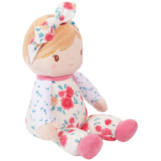 There’s nothing Vera the plush Floral Soft Doll loves more than a garden full of blossoming flowers! Her cuddly design features floral print pajamas and a coordinating headband. Vera’s good-natured smile and bright-eyed expression are depicted in baby-safe embroidery. Pink airbrushing brings a glow of rosiness to her cheeks. Vera’s plush body is filled with resilient polyester fill, making her an ideal cuddle companion for the littlest people. Let this sweet plush doll bring smiles and sunshine to your little one’s day.