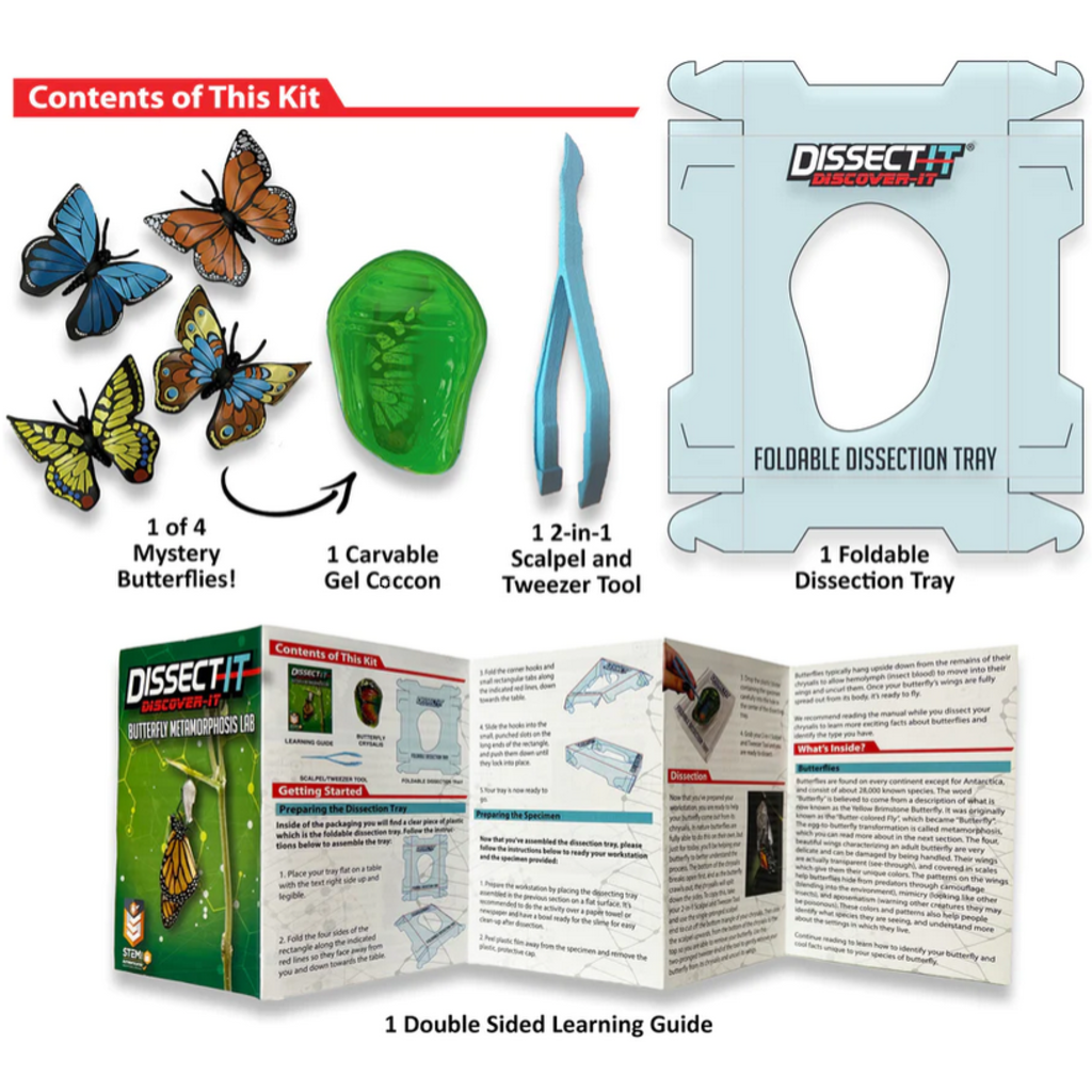 PLEASE NOTE: Each Dissect-It® Discover-It kit is sold individually. Choose one kit from the drop-down menu above: ANCIENT AMBER, BUTTERFLY METAMORPHOSIS, OWL PELLET or PEARL SHUCKING.