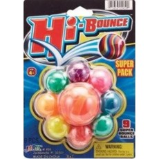 This package of Hi Bounce Super Balls has been a steady seller at The Toy Store for over 45 years! These 1" balls are just the right size to tuck into a pocket! There are nine balls in every pack, enough to share with your brother! They feature bold hot colors and the best part of this story is that they bounce REALLY HIGH!