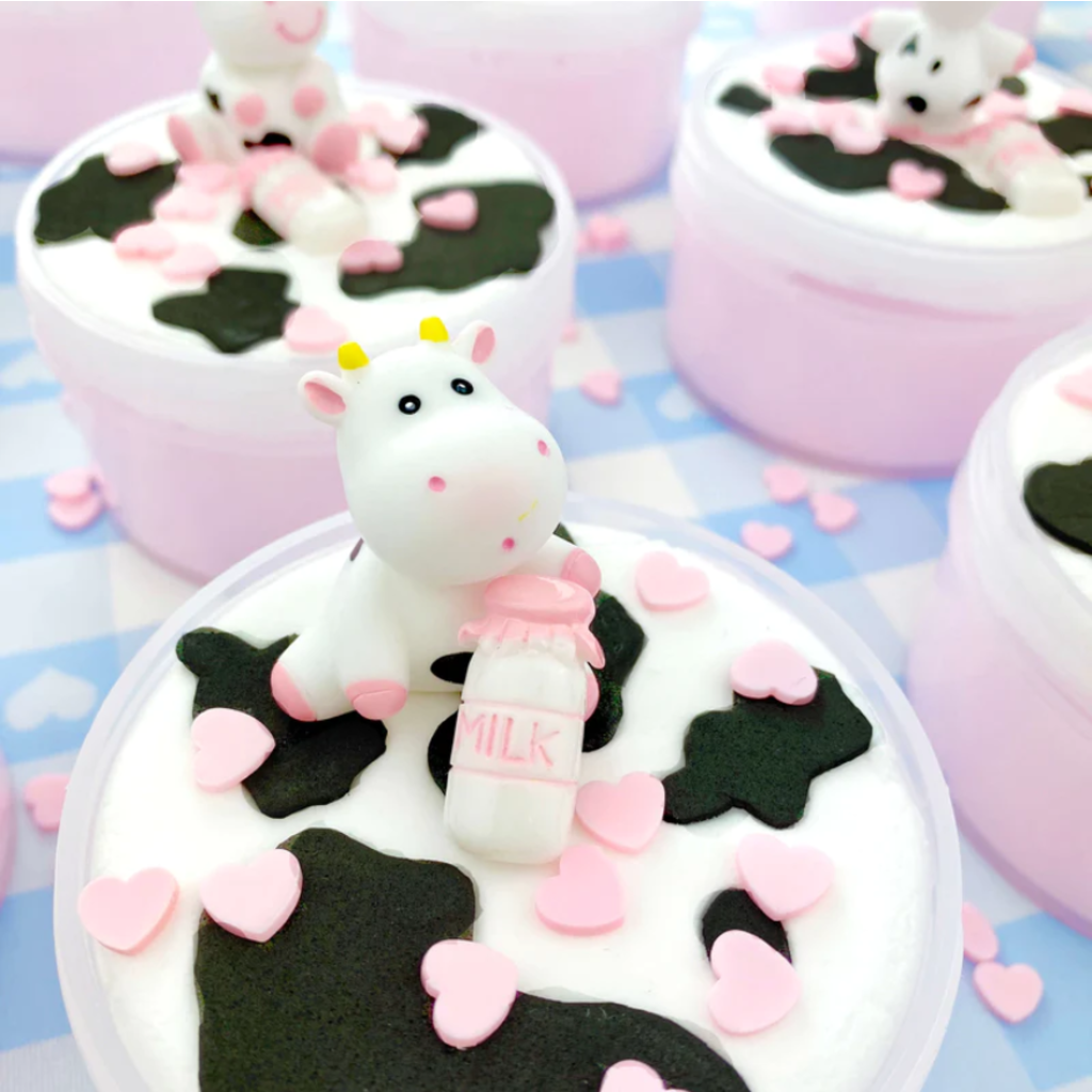 - Straw-Dairy Cow 2 Slimes in 1 from Kawaii Slime Company is two Slimes in one container – mix them up and enjoy a poofy butter slime texture!