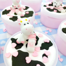 - Includes a clay cow topper and a sweet strawberry milk scent.
